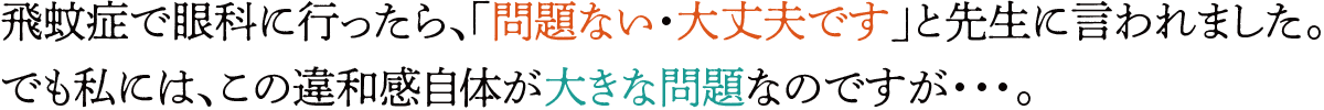病気が原因でない「生理的飛蚊症」は、眼科で診察を受けても多くの場合「問題ないので治療をせず、経過観察しましょう。」と言われます。